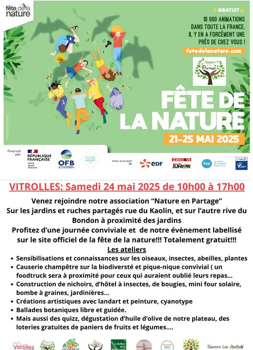 L'association Nature en Partage, en partenariat avec la ville de Vitrolles et plusieurs autres associations, réitère depuis 2023 un événement unique où sensibilisations, découvertes, expérimentations et convivialité se rencontrent.